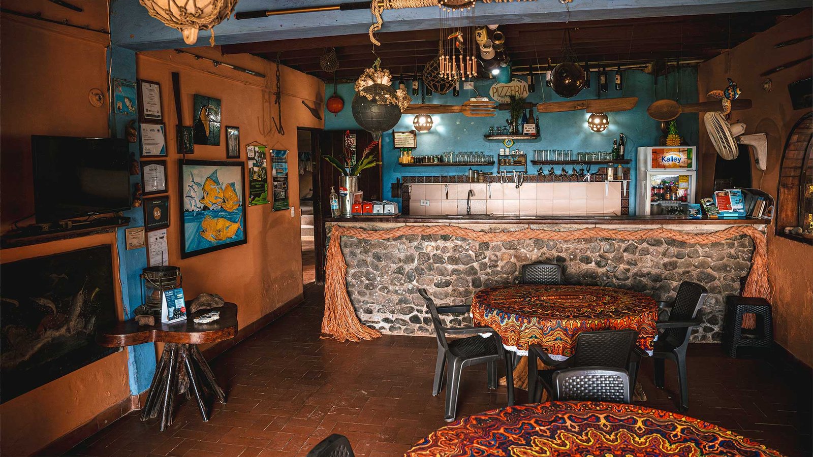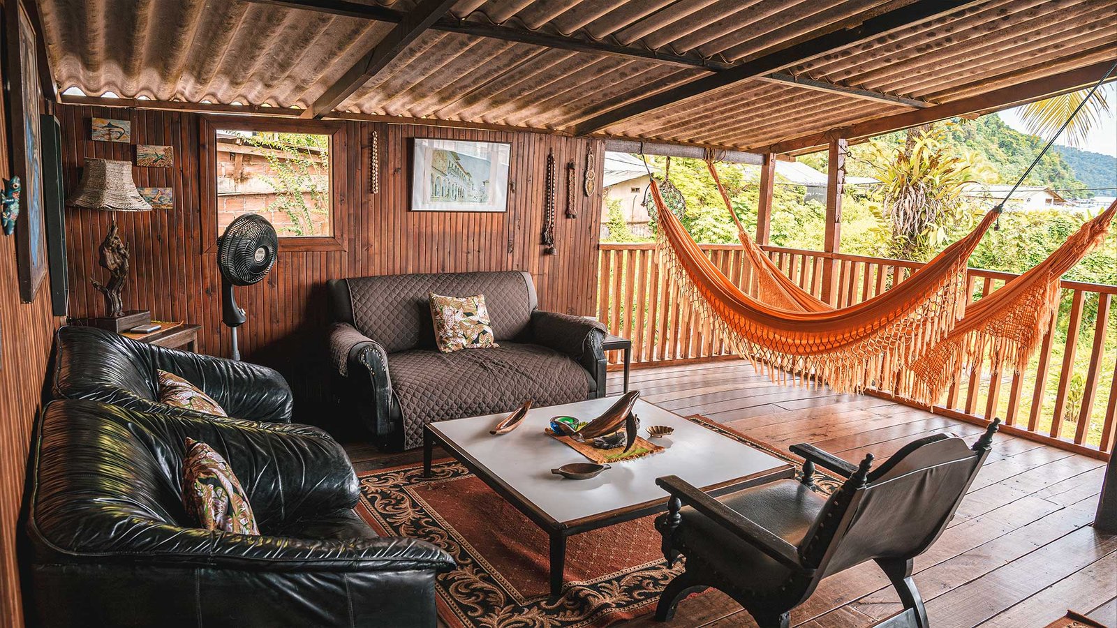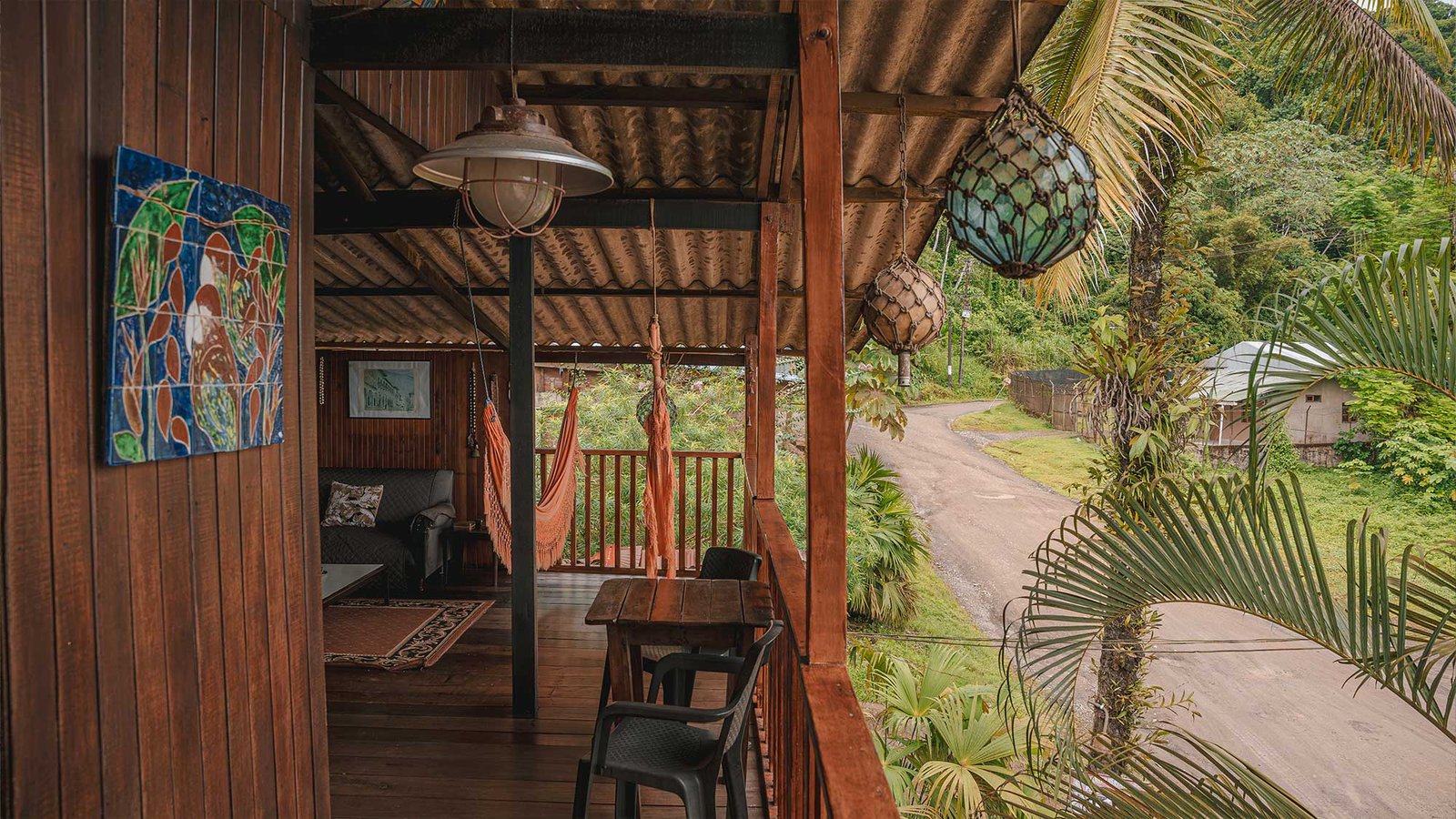 Es de infraestructura rústica, tiene 7 habitaciones con baño privado donde 3 de ellas tienen aire acondicionado ubicadas en el primer piso y 4 de ellas tienen ventilador están  ubicadas en el segundo piso con acceso directo a una sala de estar con vista al mar, hamacas y WI-FI.